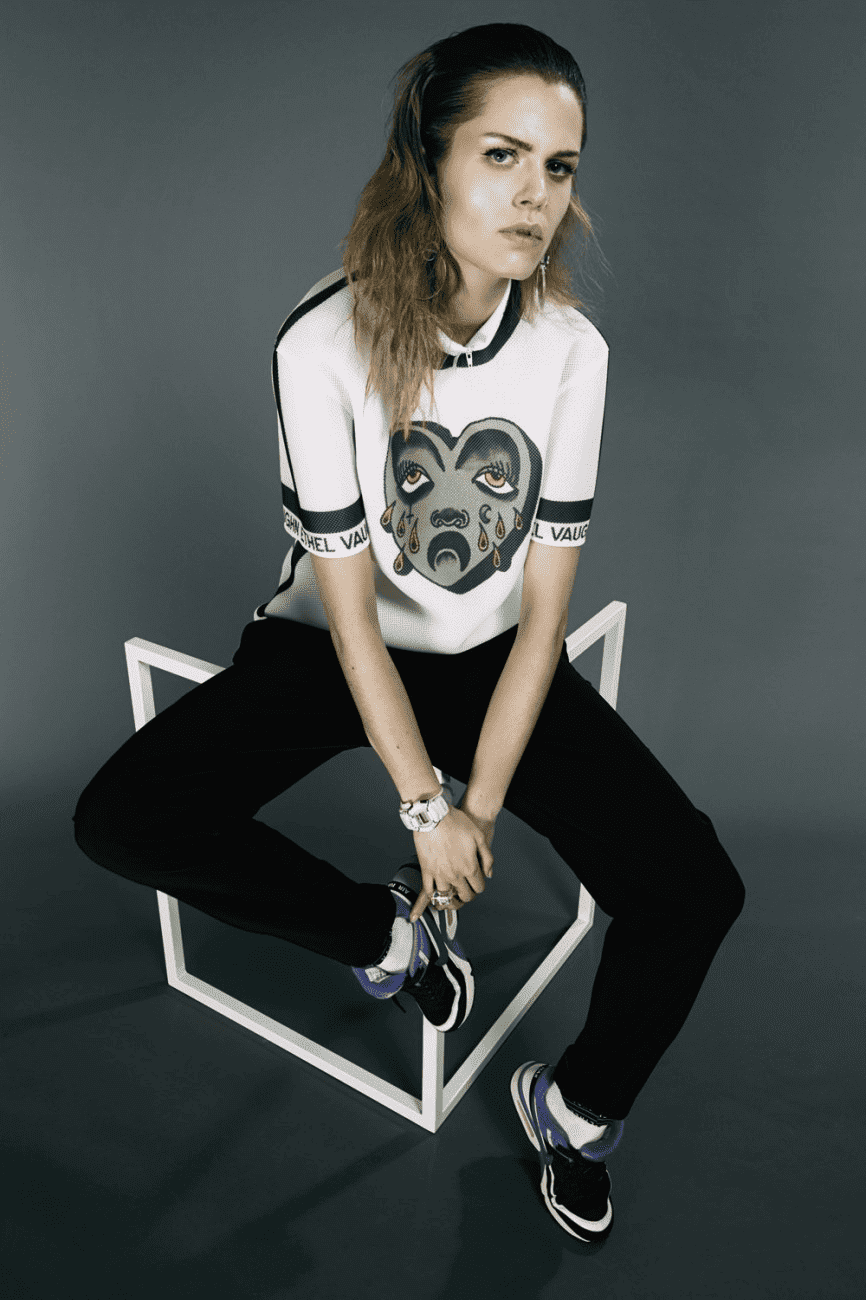 Die Kollektion enthält ausdrucksstarke Prints und Grafiken im Stil der 1960er-Jahre, die von dem Künstler Axel Pemöller inspiriert wurden. In den Kleidungsstücken werden Eleganz und Grunge, klare Linien strukturierter Kleidung und Merkmale des freien sportlichen Stils harmonisch kombiniert, was letztendlich eine unerwartete und interessante Kollektion entstehen lässt.