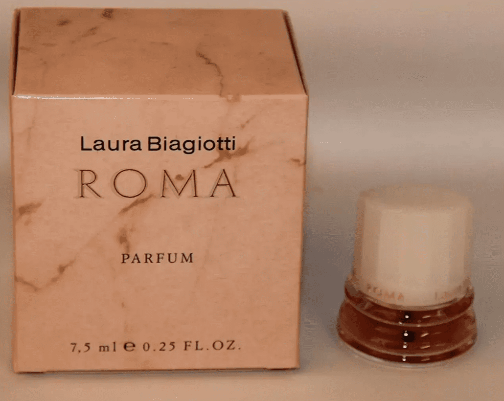 На прохання Лаури Бьяджотті дизайнером була розроблена упаковка, що за формою нагадує старовині колони Італії. Так виник лаконічний та стриманий флакон аромату «Roma», який не можливо ні з чим сплутати.